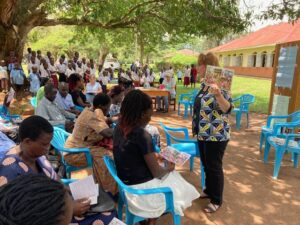 So, another initiative is to encourage teachers to write story books for their pupils. In October 2024, FFT invited Ugandan author Cathy Kreutter to run a workshop about her books and how to write stories.